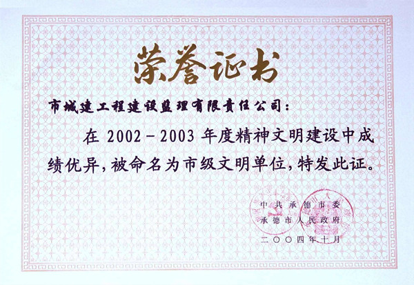 上一篇:省級(jí)榮譽(yù)——河北省先進(jìn)監(jiān)理企業(yè)